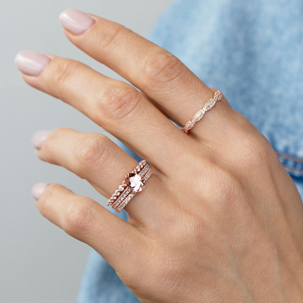 Limited Lifetime Warranty Included. Diamond weight may vary Available in different sizes of diamonds. 14K Rose Gold Twisted Pavé Wedding Ring.